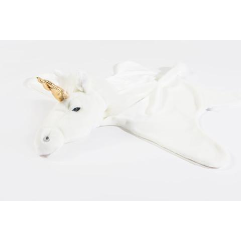 The luxurious white faux unicorn fur feels like a fluffy cocoon and when it's time to rest after a long day of play this unicorn cape makes the perfect blanket or play mat.